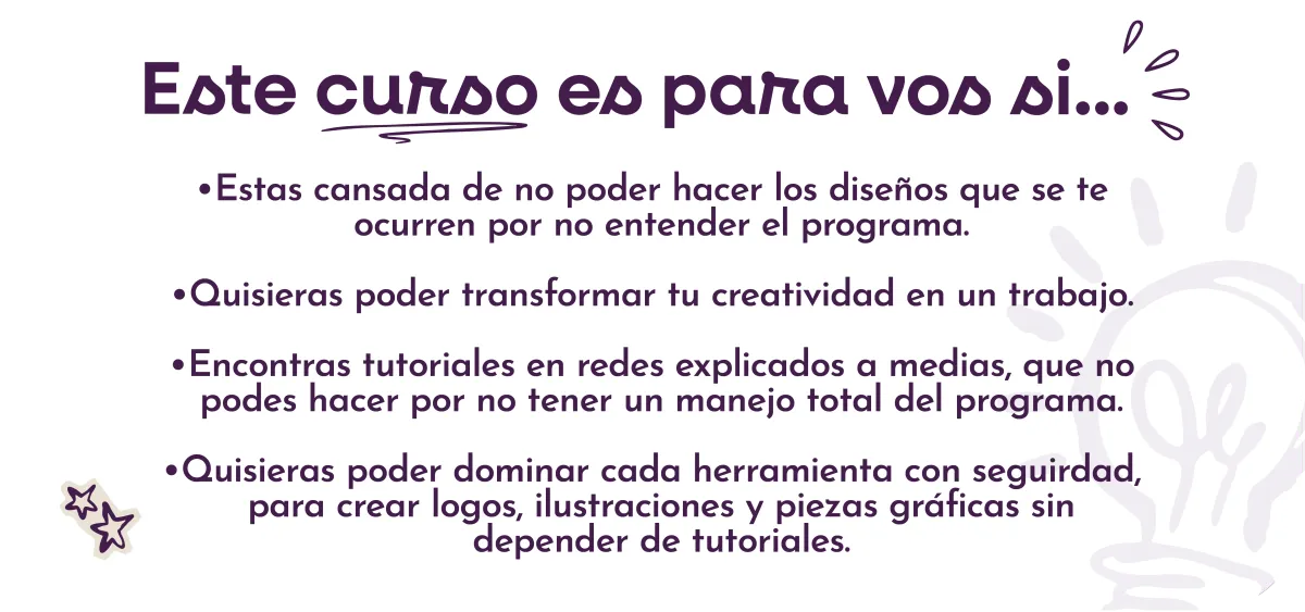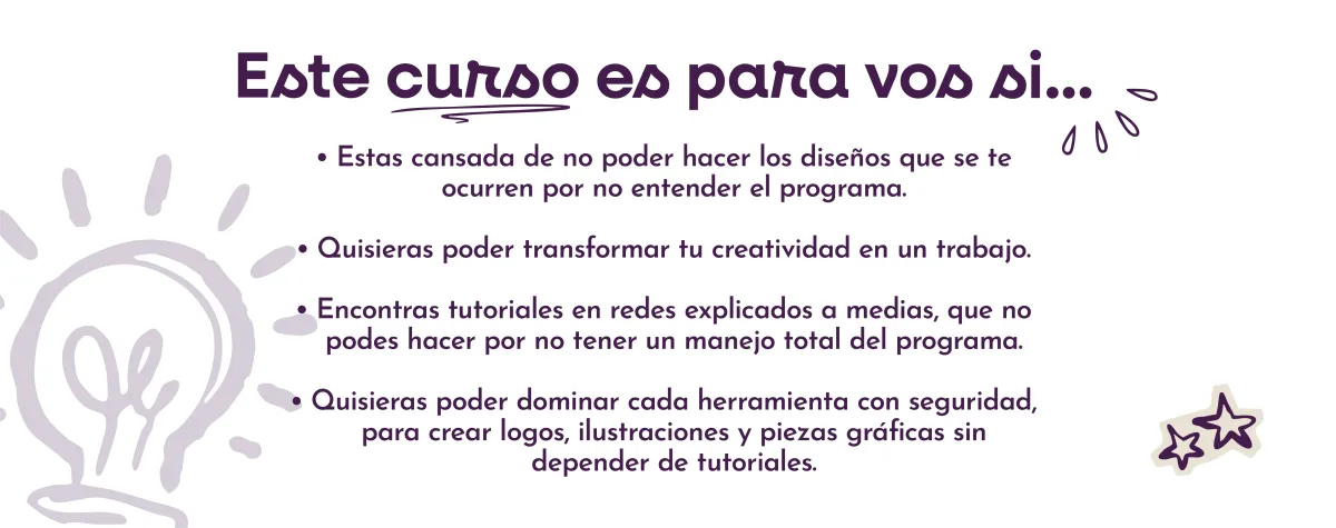 Para apasionados del arte y el diseño que estén listos para aprender a manejar Illustrator por completo y poder llevar su imaginación a proyectos tangibles, generando diseños que los diferencien del resto.