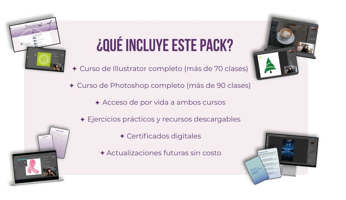 Este pack es ideal para personas que quieren especializarse en el mundo del diseño, la fotografía o lo visual en general. Tanto si estás dando tus primeros pasos, como si ya tenés experiencia y querés profundizar tus habilidades, estos cursos te ofrecen una formación completa, clara y aplicable desde el primer momento.